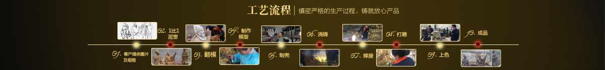 制作一件完美的鑄銅雕塑,最重要的步驟就是制作泥塑模型,然后再用工業(yè)硅膠拓印、翻模。所以泥塑的姿態(tài)、神情生動與否直接影響最終銅雕塑的品質(zhì)。所以我廠一直對泥塑模型的制作格外重視。我廠以雕塑為本,以藝術(shù)為根,挾中華文化之傳統(tǒng),偕歐陸藝術(shù)之風(fēng)韻,風(fēng)格獨特,盡顯淋漓盡致。我們本著大膽創(chuàng)新、勇于突破的精神,以追求卓越為導(dǎo)向,堅持寧缺勿濫為原則,并可依照您提供的要求,為您量身設(shè)計制作。我廠人才濟濟,有智慧嚴(yán)謹(jǐn)?shù)墓芾戆嘧?,眾多年輕充滿激情、充滿創(chuàng)意的專業(yè)設(shè)計團隊、有專業(yè)技術(shù)精湛的雕塑制作人才和專業(yè)的施工隊伍。他們不僅具深厚的文化藝術(shù)底蘊,更汲取當(dāng)代雕塑精華,博采眾家之長,作品既有嚴(yán)肅莊重寫實題材,也有輕松前衛(wèi)的抽象題材,表現(xiàn)手法上浪漫主義中不乏樸實,現(xiàn)實主義中蘊涵著激情,設(shè)計理念貫穿古今、融匯中西,深刻詮釋著藝術(shù)的精髓,把古典主義和后現(xiàn)代主義完美的融合,將雕塑藝術(shù)演繹為力的凝聚、美的體現(xiàn),讓人們感受到的不僅是一種藝術(shù)的浪漫與優(yōu)雅、粗獷與悲壯、更是豐富的優(yōu)秀藝術(shù)寶藏和文化傳統(tǒng),讓您在藝術(shù)與文化中穿流,在時空中飄蕩,使靈魂在藝術(shù)的海洋洗禮。 MORE+